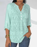 Lässige bluse aus einfarbiger spitze mit plissierten ärmeln und knöpfen