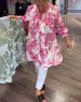 Shirt mit V-Ausschnitt und Laternenärmeln, bedruckt