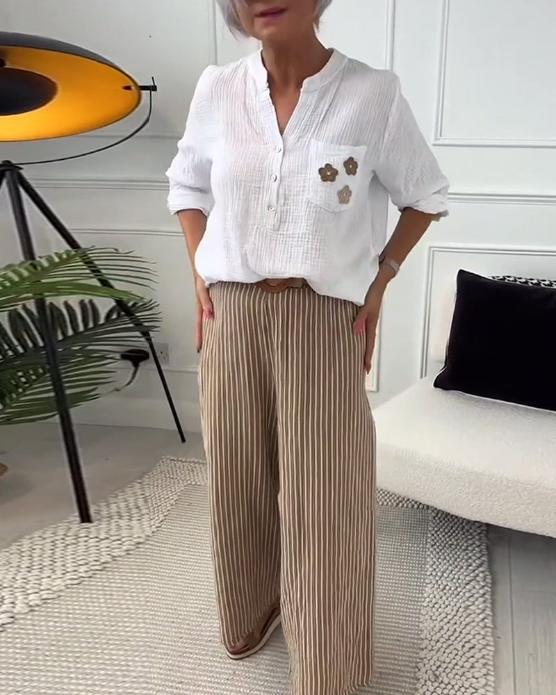Lässige, einfarbige Bluse mit V-Ausschnitt und Knopf