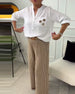 Modische hose in einfarbiger farbe mit unregelmäßigem patchwork und taschen
