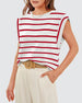 Lässiges ärmelloses top mit streifendruck und rundhalsausschnitt
