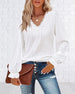 Modische bluse mit V-ausschnitt und laternenärmeln in einfarbiger farbe