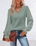 Schlichtes, einfarbiges, elegantes Langarm-Top mit V-Ausschnitt