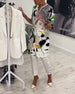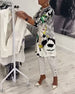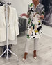 Bunt bedrucktes taschenkleid mit v-ausschnitt und halbarm