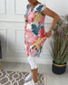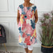 Bunt bedrucktes taschenkleid mit v-ausschnitt und halbarm