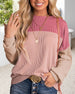 Top Mode einfarbig Häkelspitze Ärmel Patchwork