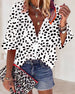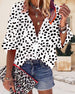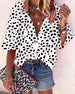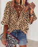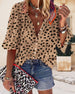 modische bluse mit leopardenmuster und V-ausschnitt sowie patchwork-spitze