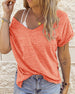 Einfarbiges T-Shirt mit V-Ausschnitt