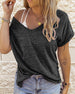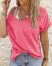 Lässiges, einfarbiges oberteil mit pailletten und v-ausschnitt