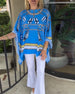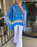 Shirt mit V-Ausschnitt und Laternenärmeln, bedruckt