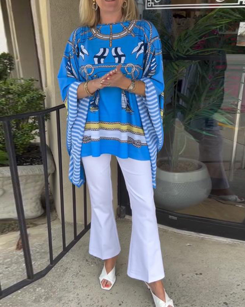 Lässige bluse mit rundhalsausschnitt und leopardenmuster