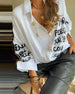 Bedrucktes Langarmshirt mit V-Ausschnitt