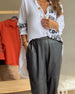 Lässige, einfarbige Bluse mit V-Ausschnitt und Knopf