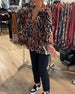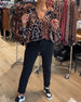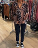 modische bluse mit leopardenmuster und V-ausschnitt sowie patchwork-spitze