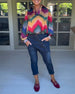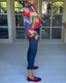 Mehrfarbiges, langärmliges Oberteil mit Reverskragen