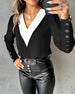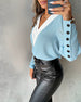 Oberes Hufeisen Ärmel V-Ausschnitt Kontrastfarbe