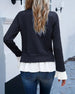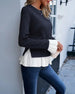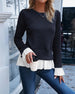 Top Mode einfarbig Häkelspitze Ärmel Patchwork