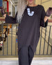 Lässiges oberteil mit schmetterlingsspitzen-patchwork und tasche