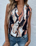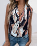 Oberteil mit V-Ausschnitt und Marmordruck mit Knopf