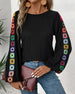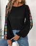 Top Mode einfarbig Häkelspitze Ärmel Patchwork