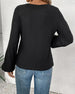 Schlichtes, einfarbiges, elegantes Langarm-Top mit V-Ausschnitt