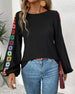 Pailletten-Top mit Ballonärmeln und Rundhalsausschnitt