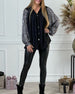 Lässiger kapuzenpullover mit reißverschluss und patchwork-muster aus denim