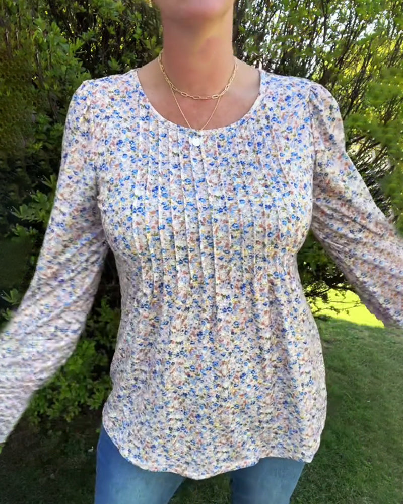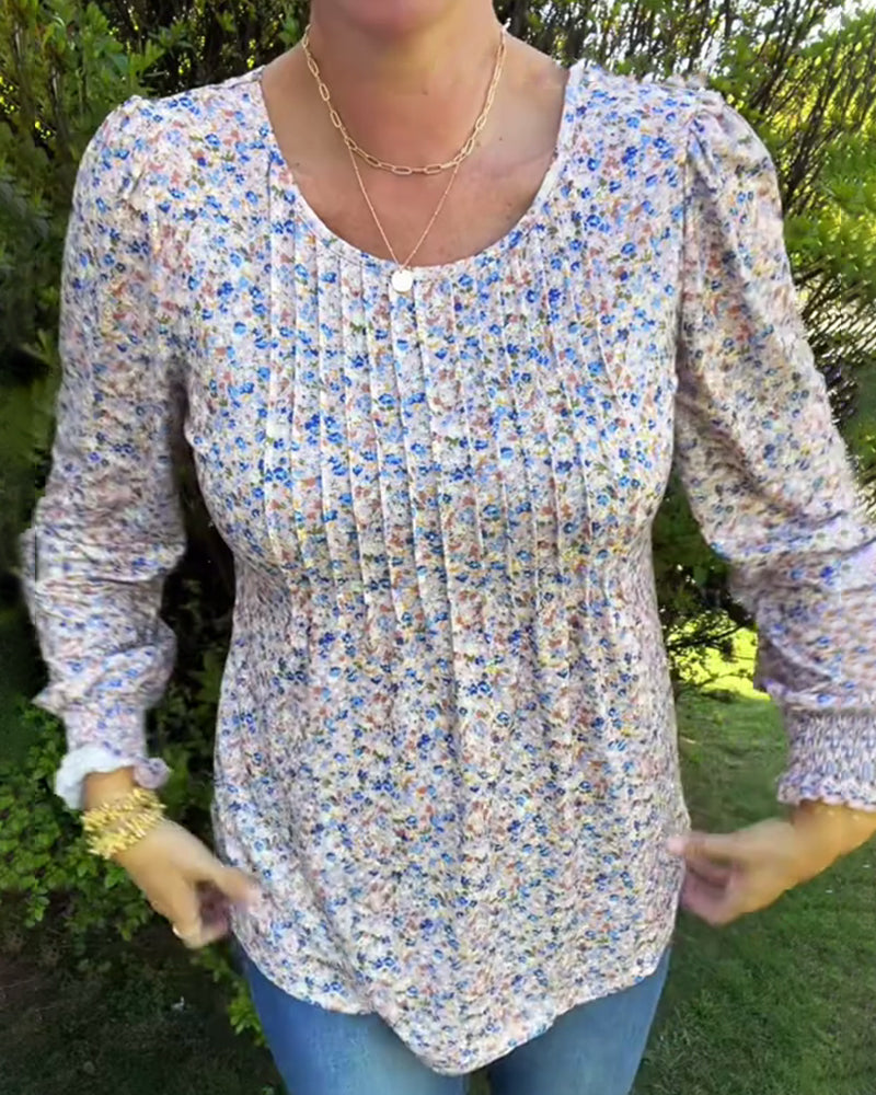Plissiertes Top mit Blumenmuster und Puffärmeln