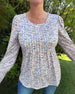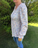 Shirt mit V-Ausschnitt und Laternenärmeln, bedruckt