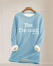 Lässiger Langarm-Kapuzenpullover bedrucktes Tunika-Oberteil