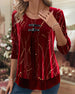 Lässiges, einfarbiges oberteil mit pailletten und v-ausschnitt