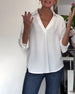 Lässige, einfarbige Bluse mit V-Ausschnitt und Knopf