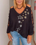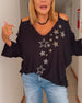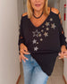 Schulterfreies Oberteil mit Ausschnitten und Sternenmuster