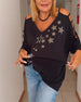 Elegantes Top mit V-Ausschnitt, Plissee und Pailletten