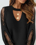 Top Mode einfarbig Häkelspitze Ärmel Patchwork