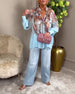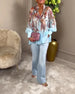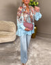 Lose bedruckte Bluse mit langen Ärmeln