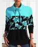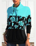 modische bluse mit leopardenmuster und V-ausschnitt sowie patchwork-spitze