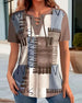 modische bluse mit leopardenmuster und V-ausschnitt sowie patchwork-spitze