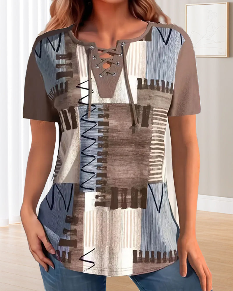 Einfaches bedrucktes T-Shirt mit Rundhalsausschnitt
