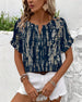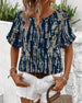 Shirt mit V-Ausschnitt und Laternenärmeln, bedruckt