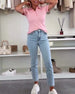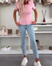 Lässige, einfarbige Bluse mit V-Ausschnitt und Knopf
