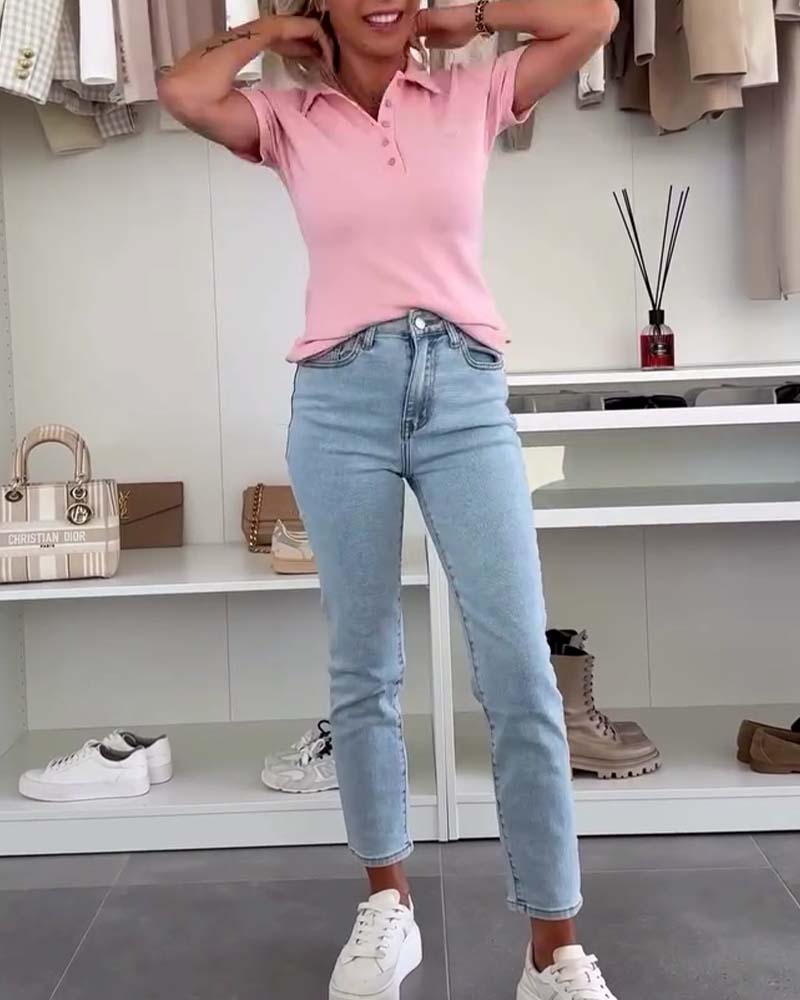 T-Shirt Revers Poloshirt Einfarbig Slim Fit
