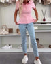 Einfaches bedrucktes T-Shirt mit Rundhalsausschnitt