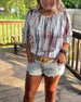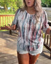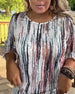 Shirt mit V-Ausschnitt und Laternenärmeln, bedruckt
