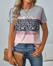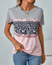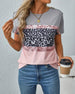 T-Shirt Rundhalsausschnitt Leopardenmuster Farbblock