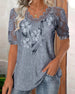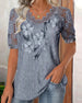 T-Shirt Spitze Häkel Patchwork Bedruckt