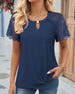 Top Mode einfarbig Häkelspitze Ärmel Patchwork