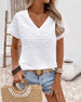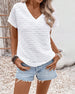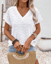 Lässiges, einfarbiges oberteil mit pailletten und v-ausschnitt