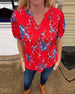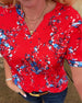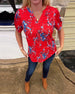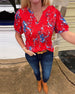 T-Shirt V-Ausschnitt Blumenmuster Kurzarm