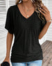 Lässiges, einfarbiges oberteil mit pailletten und v-ausschnitt